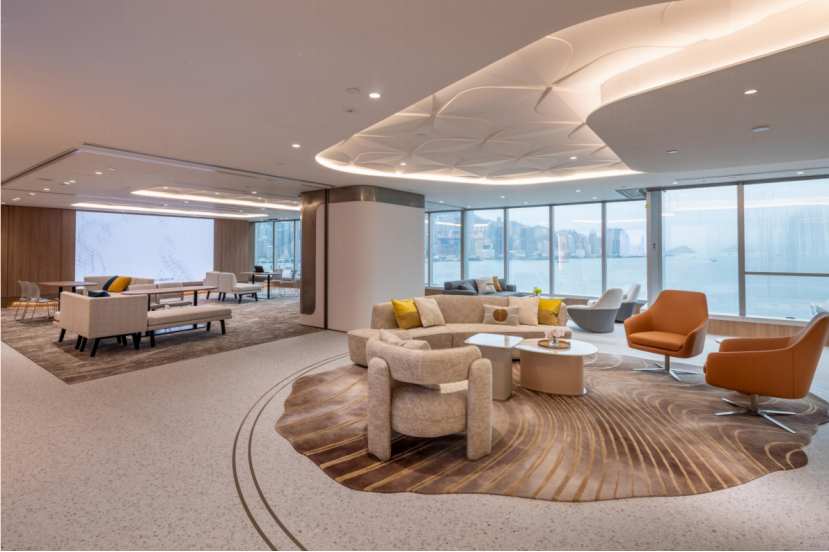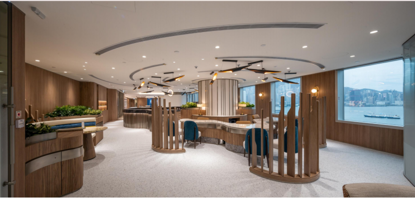 「永明荟」的空间设计贯穿前瞻性布局理念,充分挖掘并利用维港景观这一独特资源。通过精心规划的视觉通廊与开放式布局,自然光线与壮阔海景无缝融入室内,打破传统金融服务空间的沉闷感。客户在咨询财富管理方案、规划未来财务时,抬眼便能尽览世界闻名的维多利亚港风光 —— 波光粼粼的海面、错落有致的港景建筑,让金融服务不再局限于冰冷的交易场景,而是升级为融合高品质生活体验的惬意过程,重新定义 “在美景中规划财富” 的全新模式。