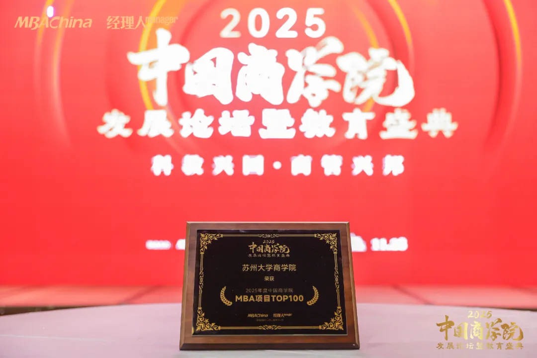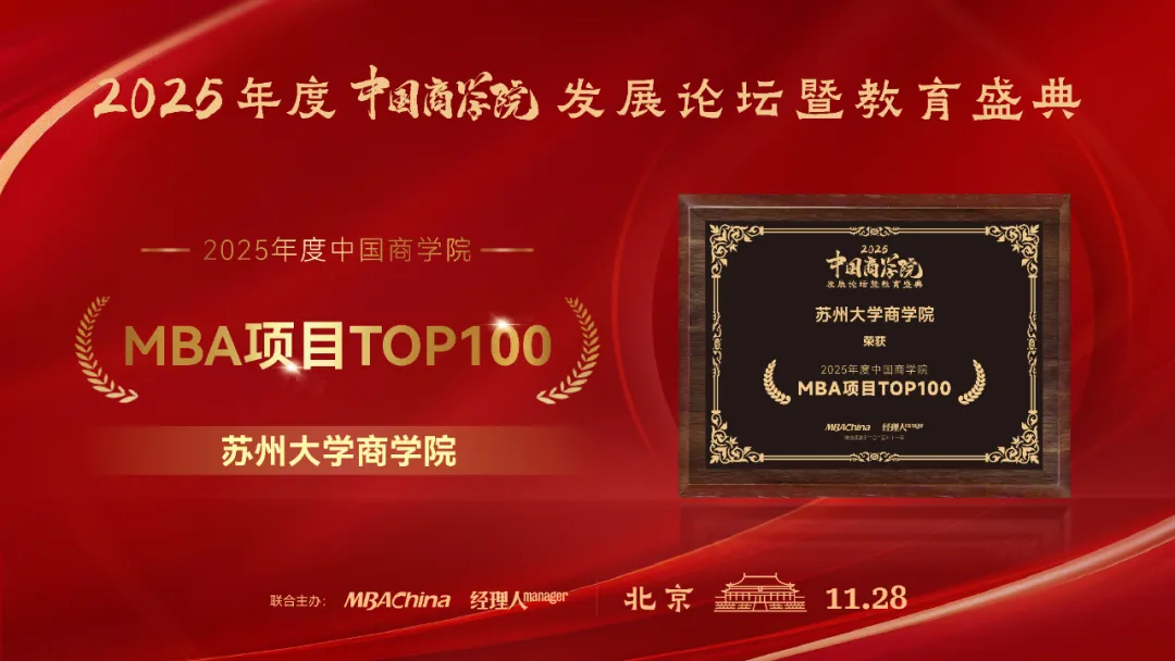 - 12-12喜报!苏州大学商学院斩获“2025年度中国商学院MBA项目TOP100”等多项荣誉